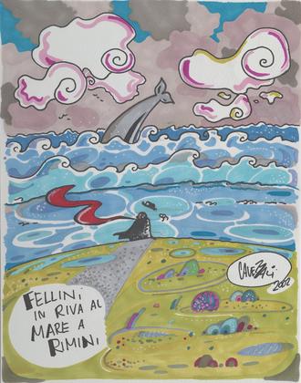 Fellini in riva al mare a Rimini
